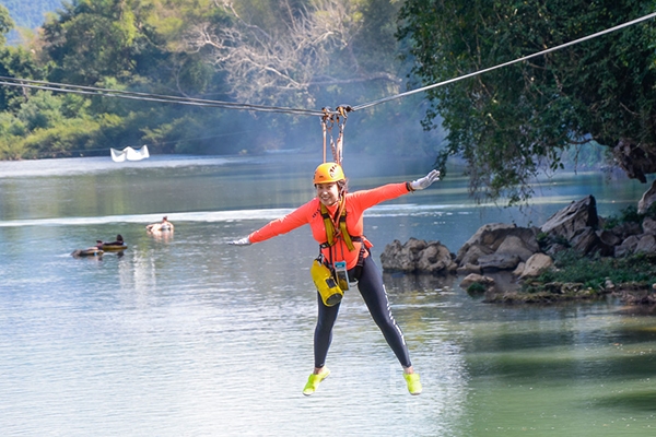 라오스는 자연 속에서 다양한 액티비티를 즐길 수 있는 곳으로 유명합니다. 특히 카약킹과 튜빙은 방비엥에서 놓칠 수 없는 경험입니다. 남송강을 따라 카약을 타고 하류로 내려가며, 맑은 물과 주변의 산을 감상할 수 있습니다. 또한, 튜브에 몸을 맡기고 강을 따라 여유롭게 흘러가면서 라오스의 자연을 즐길 수 있습니다.